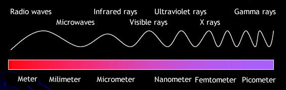 (In the visible light region, lights' color change from red to violet as their wavelength become shorter, and finally become invisible again. Then come the Ultraviolet (UV) lights whose wavelengths are longer than X-rays,